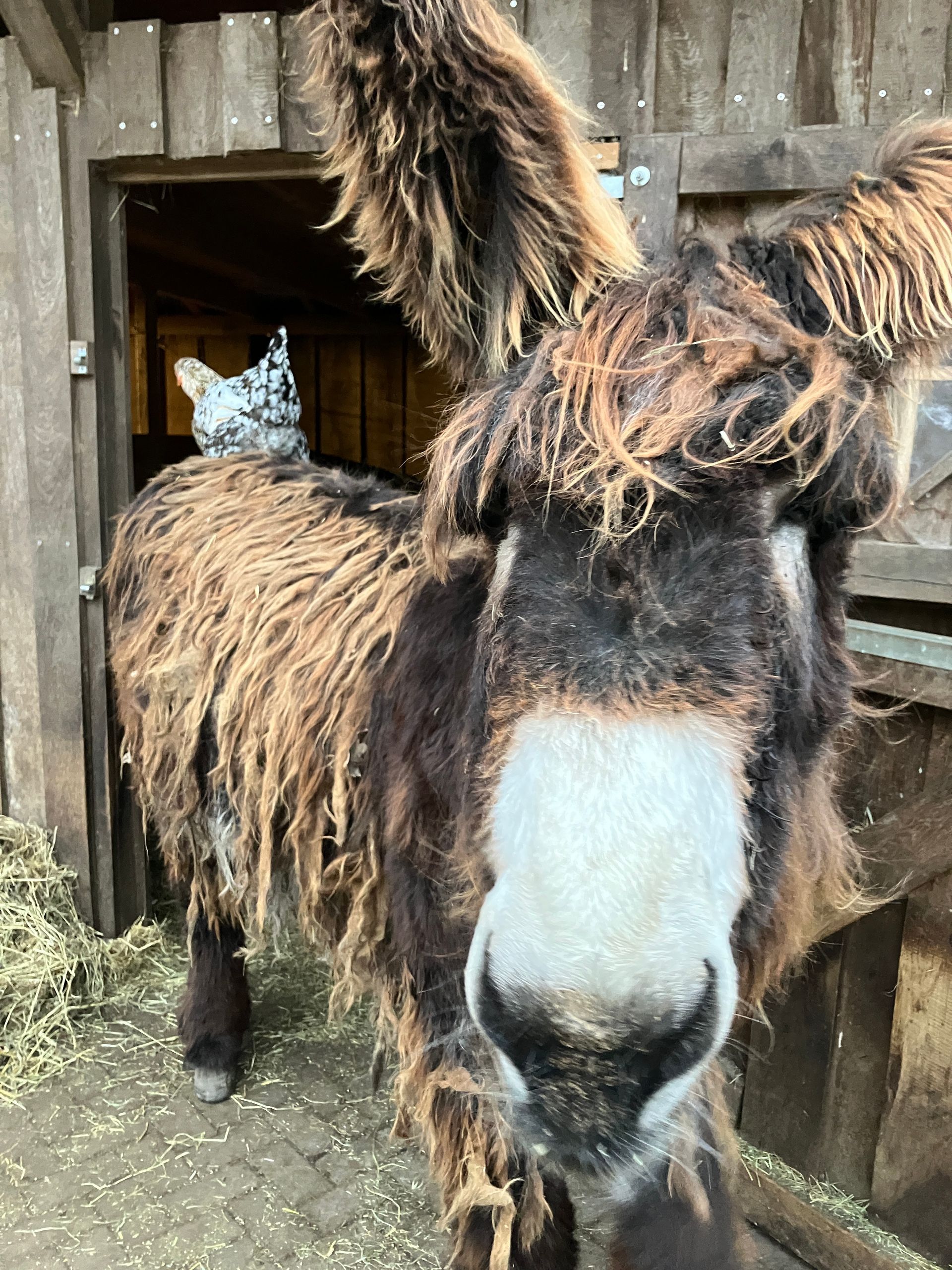 Am 02.06.2024 wurde "Ombeline", unser erstes Poitou-Eselfohlen, hier auf dem Hof geboren.